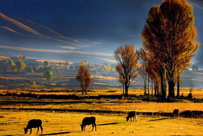 早餐后賞萬畝【青楊林】,數(shù)以萬計的青楊林像衛(wèi)兵守護著清清傍河,守望著天堂里的香格里拉,春天,一片碧波蕩漾,春意盎然,秋天則燦若云霞,金黃灑滿大地,無需裝飾就是一幅完美的自然畫卷。然后觀【色拉草原風光】,翻越【波瓦山】,欣賞迷人的【赤土】河谷、前往令人神往的【亞丁景區(qū)】。我們將轉乘景區(qū)的觀光車,(觀光車費用:120元/人費用自理)翻越【牛郎神山】(海拔4760米),抵達目的地亞丁景區(qū)【扎灌崩】,步行十分鐘左右,到【沖古寺】,(藏語意為填湖造寺,海拔3900米)欣賞由草地、森林、小溪和嘛呢堆組成的天然沖古草坪,朝觀神山【仙乃日】(意為觀世音菩薩,海拔6032米)。然后乘坐電瓶車(約6.5公里,往返80元,單程50元,費用自理)或者步行(步行3個小時),到達【洛絨牛場】,遠觀【夏諾多吉】(意為金剛手菩薩,海拔5958米),【央邁勇】(意為文殊菩薩,海拔5958米),站在央邁勇神峰下,轉身向后瞧去,由群山環(huán)繞著的寬闊峽谷間,森林、草地、溪流和睦地各守一方,這氣勢莽莽的自然景觀,讓人流連忘返。然后可步行或者騎馬(約3小時,騎馬往返費用自理)到達【牛奶?!?。因牛奶海和五色海海拔高,客人務必根據(jù)自身實際情況選擇自費騎馬前往游覽. (牛奶海在央邁勇的山坳里,呈扇貝形,中間是碧藍的雪水,四周雪山環(huán)繞,湖水清瑩碧藍以其玲瓏秀雅水色翠藍而著名)。繼續(xù)向前便到達美麗的【五色海】又名登崇措(五色海由于光的折射下,產(chǎn)生五種不同顏色而得名:其真名為“單增措”,它位于仙乃日與央邁勇之間,海拔4600米,湖面呈圓形。面積0.7公頃,冰谷下伸至湖畔,雪山倒影湖面,呈現(xiàn)奇幻的色彩,是藏區(qū)著名的圣湖)。上山時可觀賞野生動物、高山花蕊、雪山森林、冰川、湖泊、河流,體驗人與自然和諧相處的天然妙趣,讓神山圣水與心共鳴,盡情沉醉在夢幻之地。下午6點返回景區(qū)門口。宿香格里拉鎮(zhèn)。